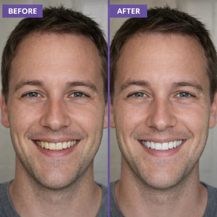 The purple color-correcting technology helps neutralize yellow tones instantly, while the whitening ingredients gradually break down deep stains caused by coffee, wine, and smoking.