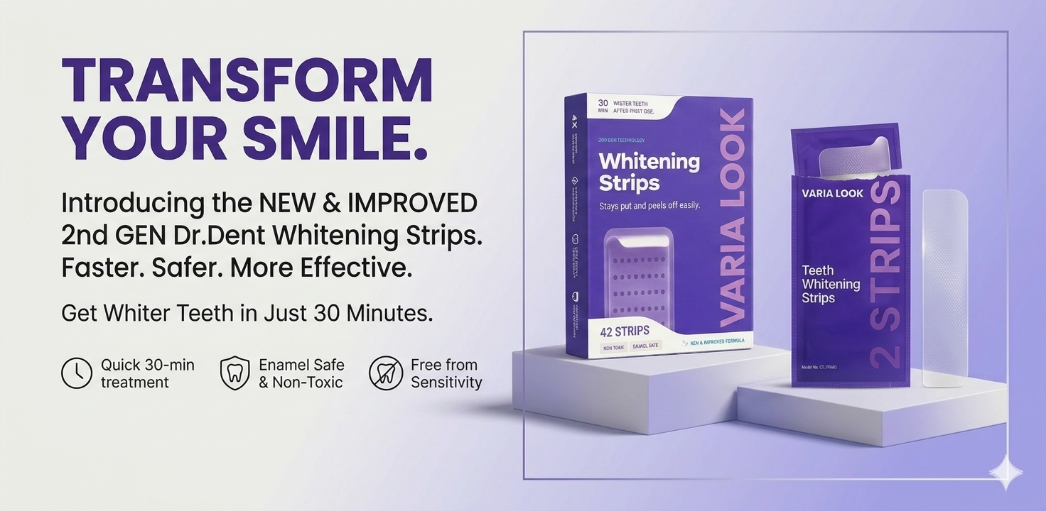 Tired of hiding your smile because of yellow or dull teeth? Varia Look™ Purple Whitening Strips are designed to visibly brighten your teeth without pain, sensitivity, or harsh chemicals — so you can smile with confidence again.